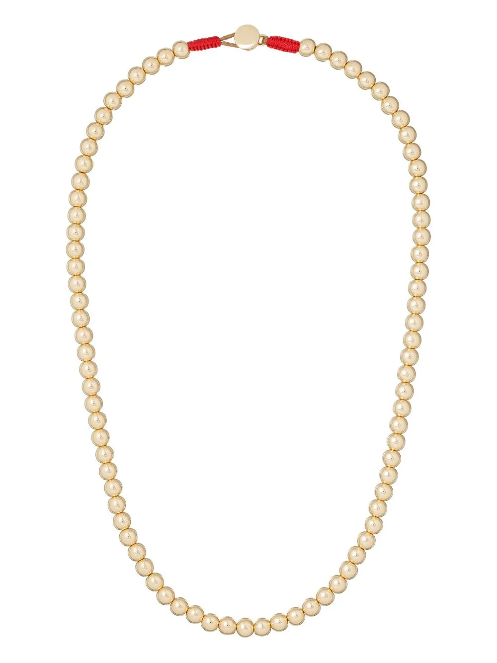 gold bead necklace Highlights - Gold - Bead embellishment - Red cord fastening - Polished finish - Round beads - Simple design Imported