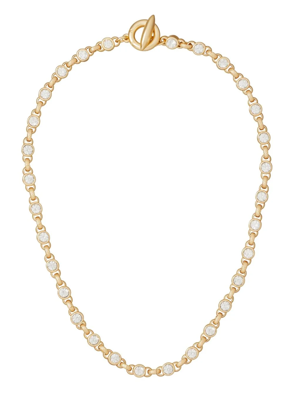 jeweled link necklace Highlights - Gold - Cable chain - Round stones - Bezel setting - Toggle clasp - Pave setting Imported