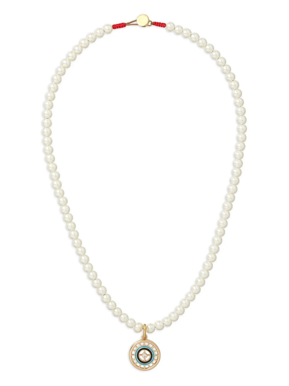 Pearl & Protect pendant necklace Highlights - White - Faux-pearl embellishment - Decorative pendant - Gold-tone accents - Red thread detail Imported