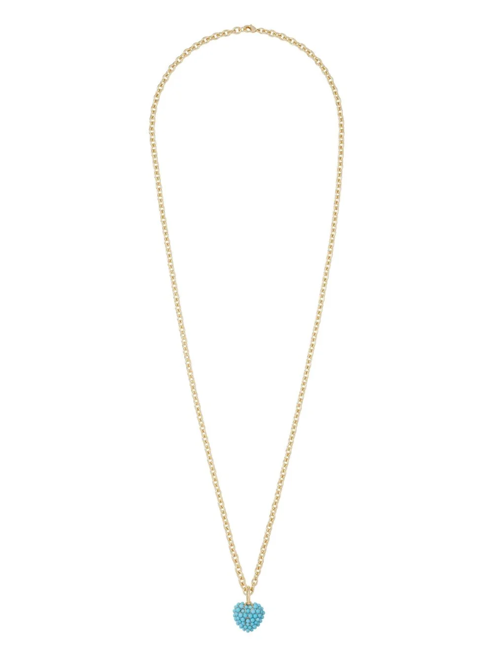 puffy heart necklace Highlights - Light blue - Heart charm - Gold chain - Beaded embellishment - Lobster claw fastening Imported