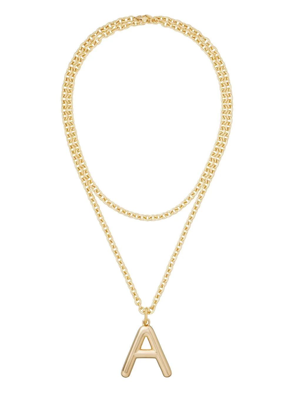 puffy initial necklace Highlights - Gold - Chain necklace - Puffed initial pendant - Lobster claw fastening - Gold-tone chain - Thick chain Imported