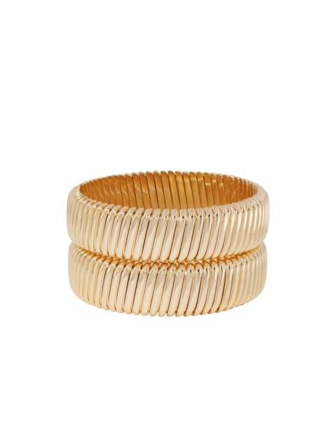ribbed bracelet duo Highlights - Silver - Ridged design - Polished finish - Two bracelets - Slip-on style - Set of two Imported