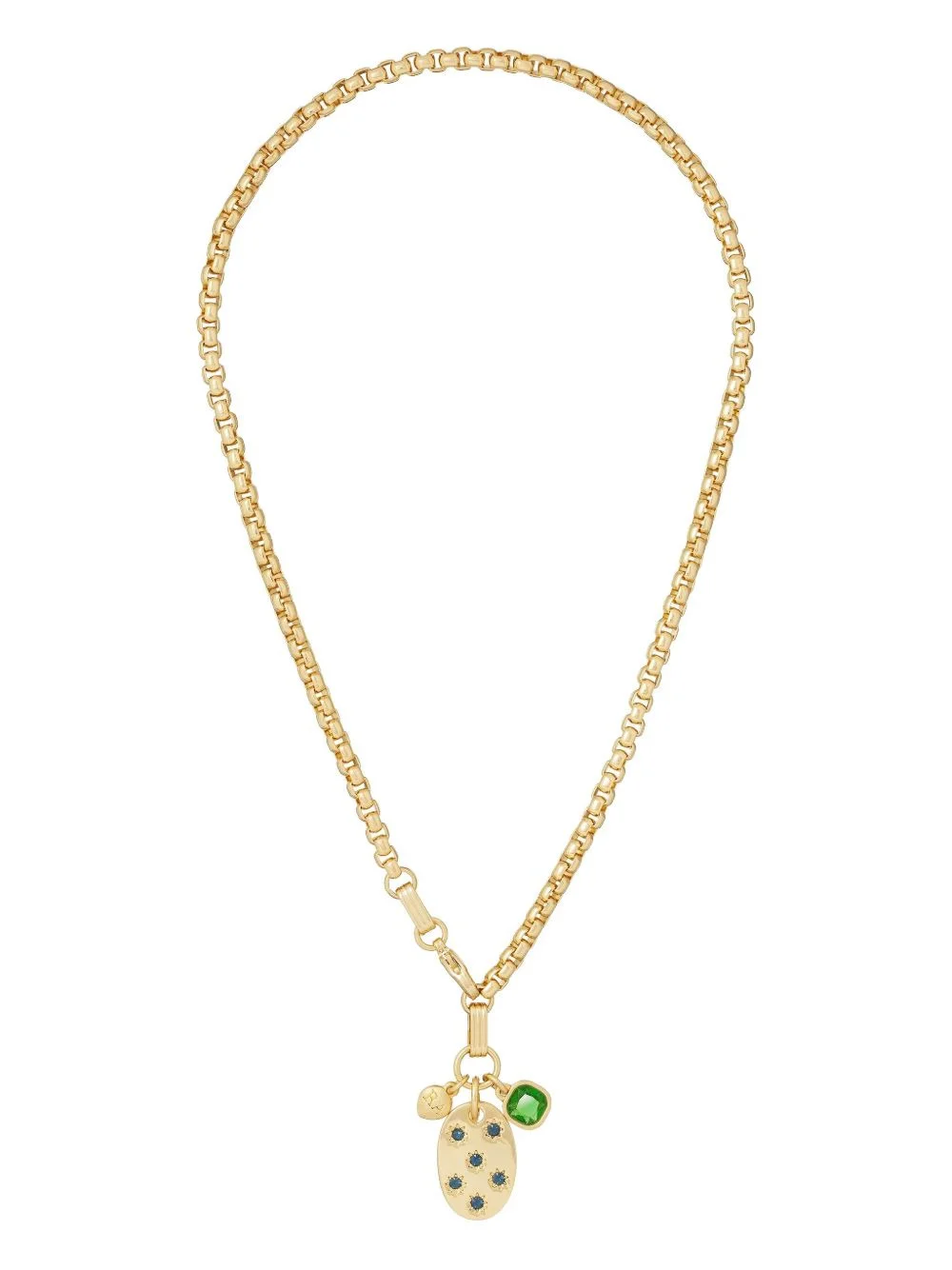 sapphire-pendant necklace Highlights - Gold-tone - Cable-link chain - Sapphire embellishments - Lobster claw fastening - Normal everyday use and external agents may reduce the lustre of gemstones and gold surfaces. to maintain, use specific, non-abrasive products specially meant for cleaning jewellery. Imported