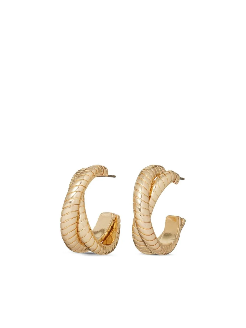The Double Cobra hoop earrings Highlights - Gold-tone - Ribbed design - Polished finish - Post-back fastening - These earrings come as a pair. Imported SIZE & FIT Measurement DIAMETER 0.39 in(1 cm)