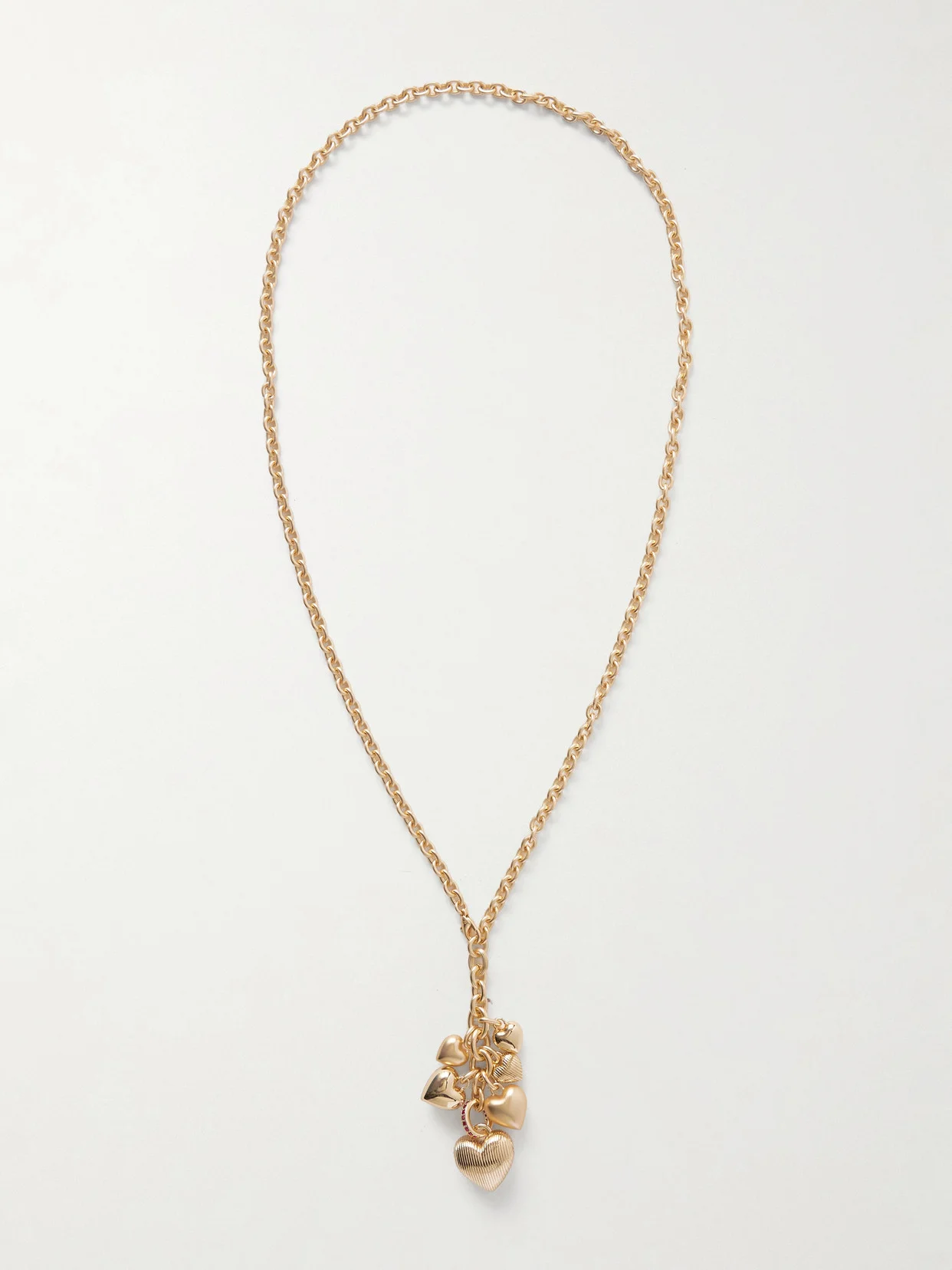 'The Family of Hearts' pendants make Roxanne Assoulin's necklace feel so sweet. It's made from gold-tone metal and encrusted with ruby red crystals for a touch of sparkle. Layer yours with shorter styles for a personalized stack.