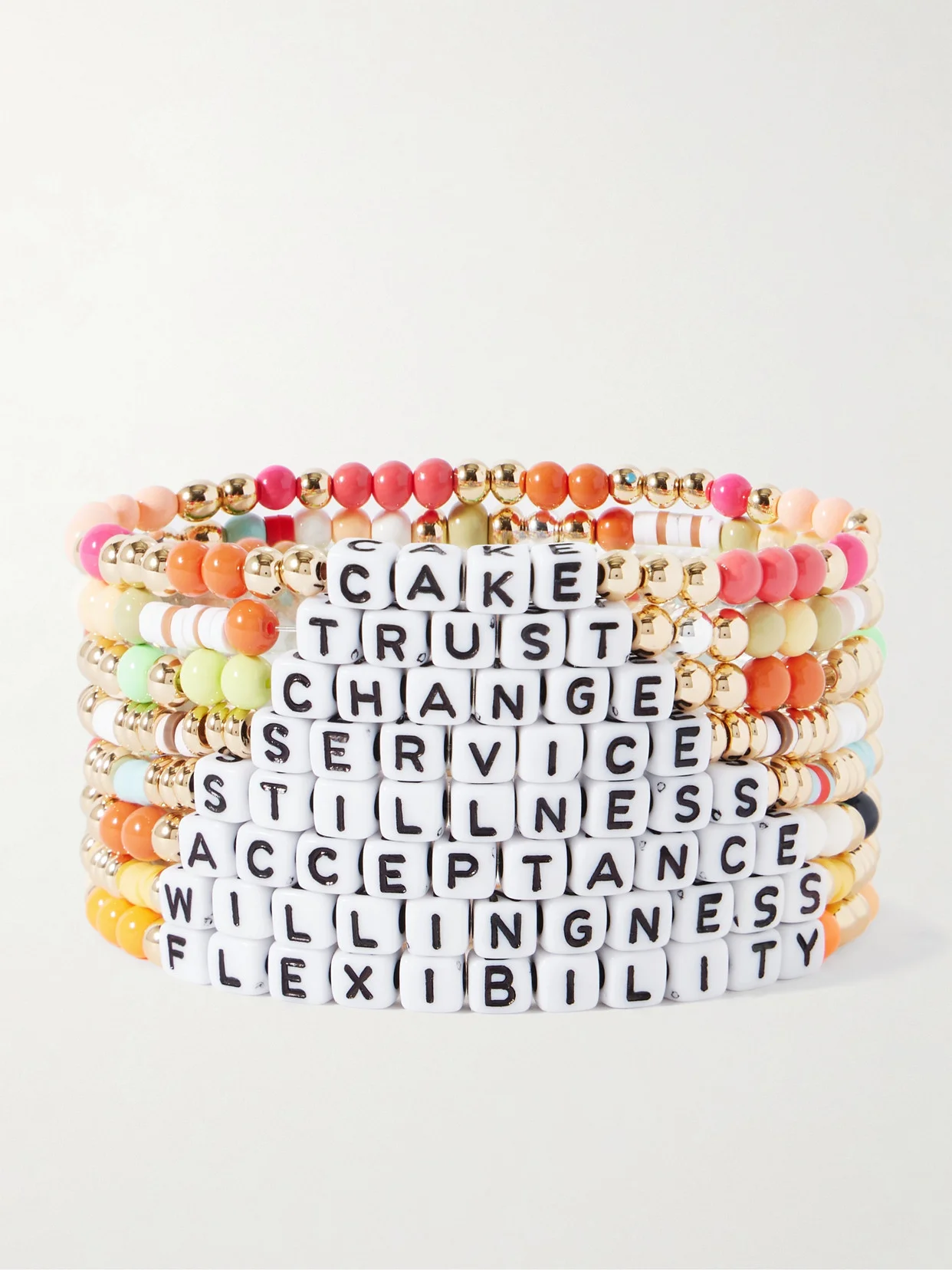 From 'Acceptance' to 'Cake'; you can take what you need with Roxanne Assoulin's 'The Grab Bag' bracelets. In a set of eight, they're strung with gold-tone and enamel beads and, as described by the label, make "the best party favor ever".