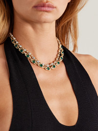 Roxanne Assoulin's 'The Jeweled Link' necklaces are sure to make an impact - even more so when styled together. A set of two, they're made from gold-tone metal and set with sparkling green and white crystals.