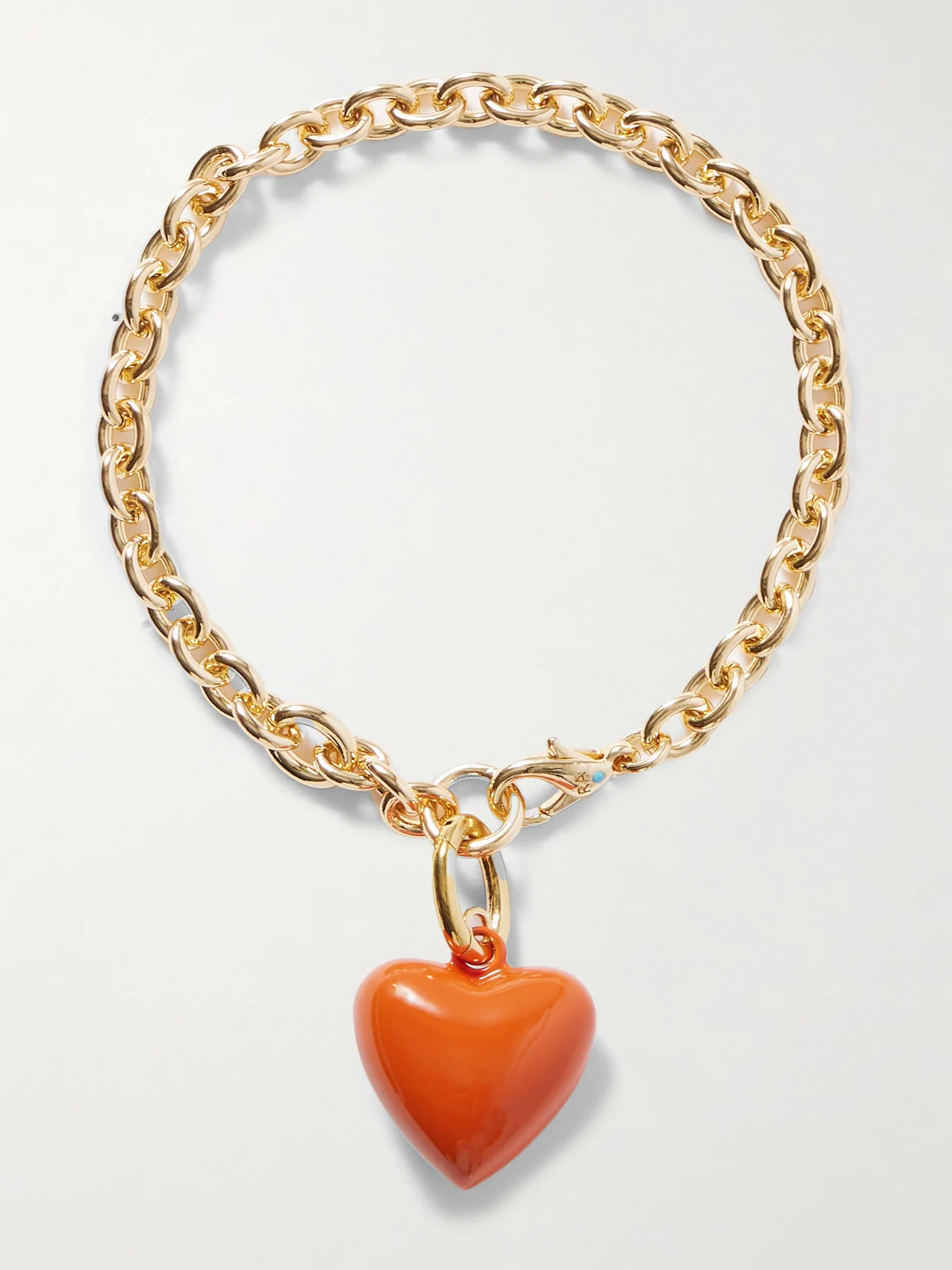 Roxanne Assoulin's bracelet is strung with a mini version of the brand's enamel 'Puffy Heart' pendant. It's made from polished gold-tone brass and has a chunky cable chain. Layer yours with others from the collection.