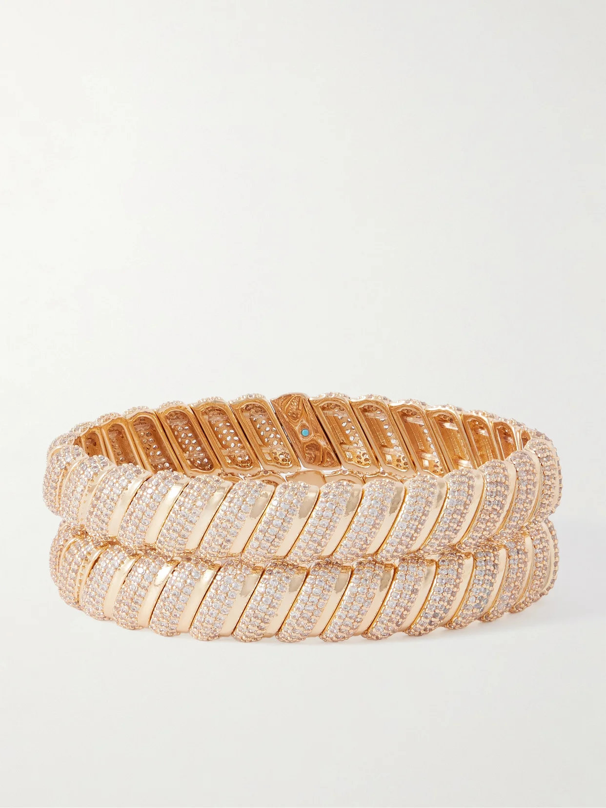 Roxanne Assoulin's ‘Palais Royale' bracelets have a curved, wavy design that's imbued with vintage charm. In a set of two, they're made from gold-tone metal polished for a shiny finish and set with glistening crystals. Wear them solo, spread across your wrists, or interspersed with similar styles.
