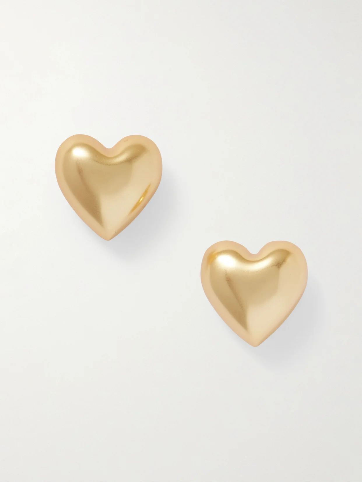 Few symbols are as enduring - and charming - as hearts. Roxanne Assoulin's 'Heart & Soul' earrings are made from polished gold-tone brass and have a rounded shape.