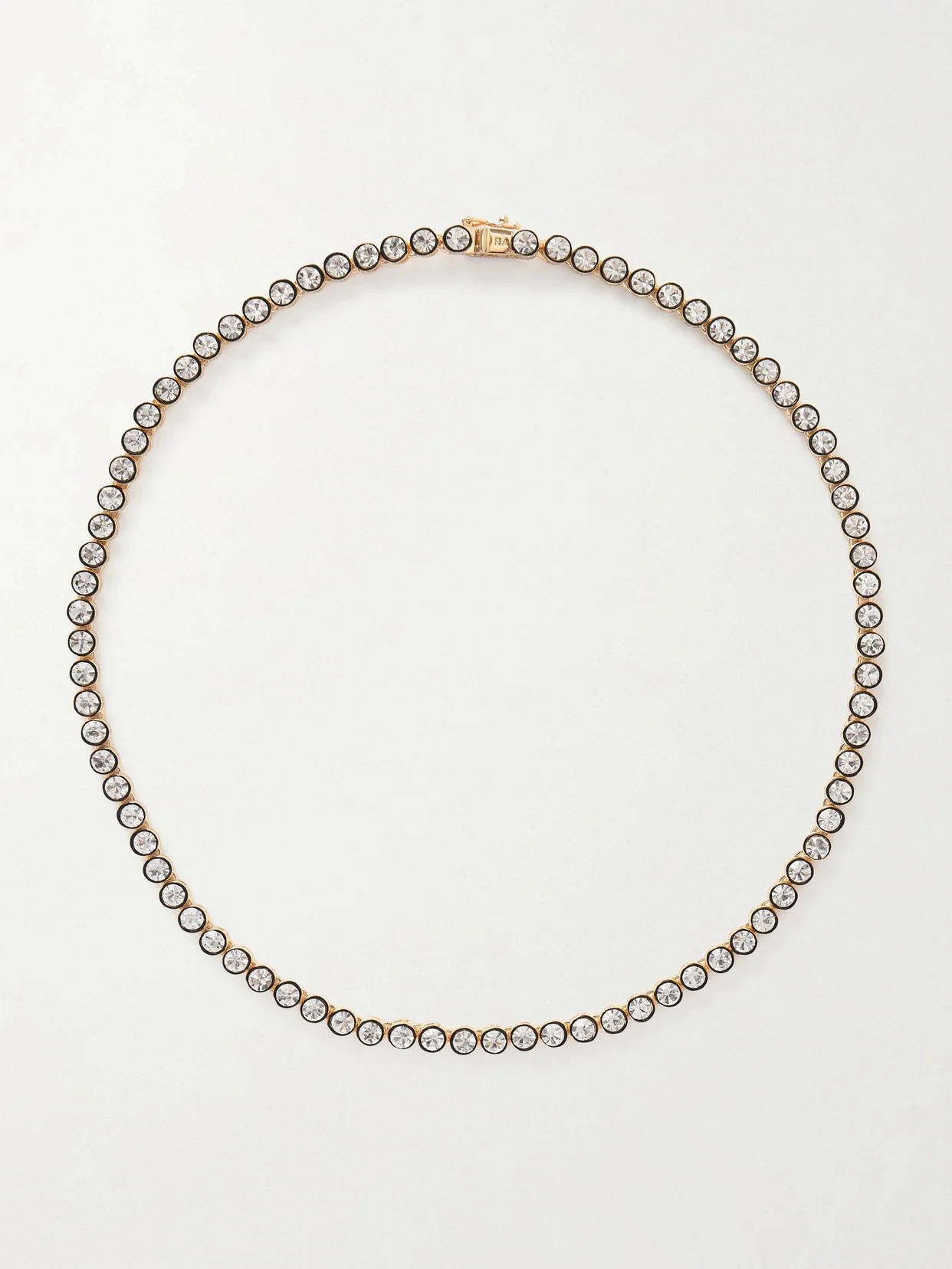'The Royal' necklace is Roxanne Assoulin's take on classic tennis styles. It's made from gold-tone metal and inlaid with shimmering cubic zirconia in an enamel bezel setting. Wear it to dress up your favorite sweats or knitwear.