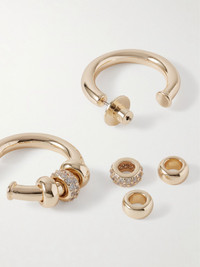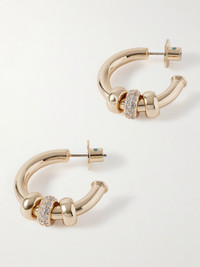 Roxanne Assoulin's 'The Slider' earrings are strung with a trio of tiny charms that move freely along the hoop silhouette, the middle of which is inlaid with shimmering crystals for a touch of sparkle. They're made from gold-tone metal and look chic stacked with smaller styles or studs. Details & Care - Crystals - Bell-back fastening for pierced ears
