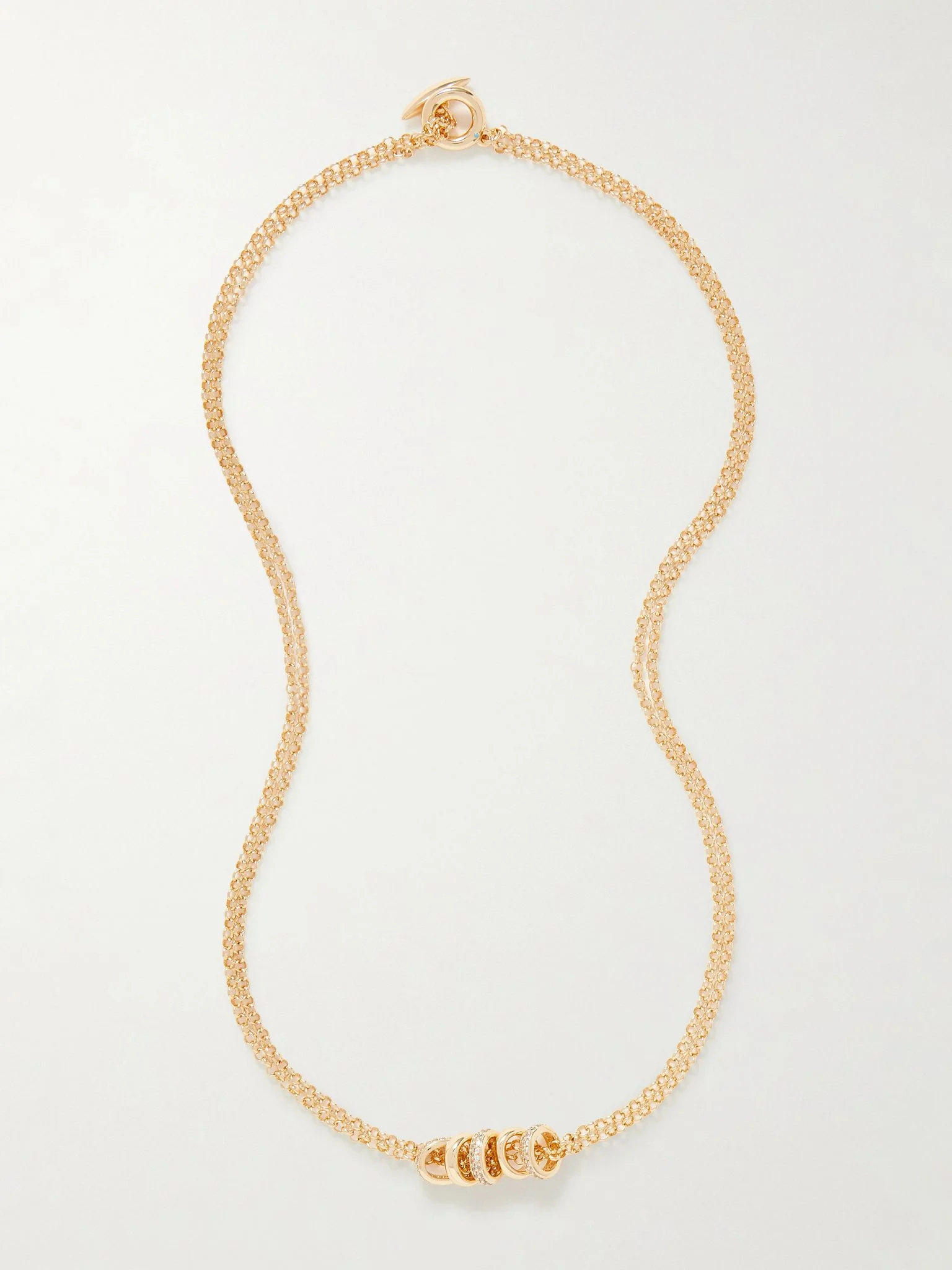 Roxanne Assoulin's 'Slider' necklace is designed to be mixed and matched with charms, but looks just as chic on its own. It's cast from gold-tone metal and strung with five sleek rings - three are encrusted with glinting crystals. Details & Care - T-bar fastening