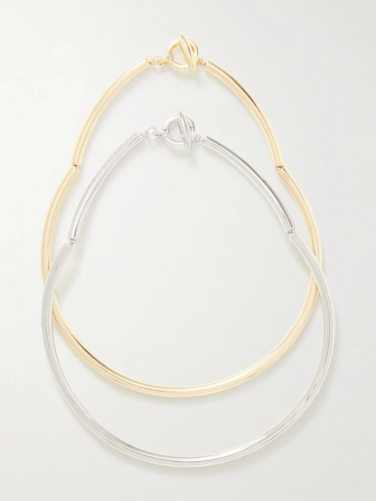 The Tubular Set Of Two Gold And Silver-tone Necklaces