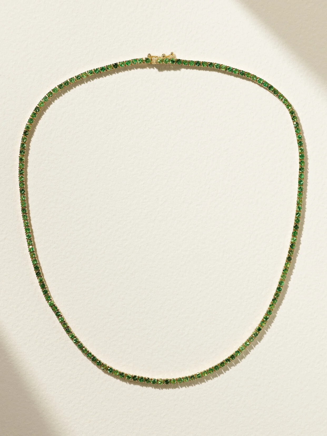 EXCLUSIVE AT NET-A-PORTER. Roxanne First's tennis necklace is so much fun to wear. It's made from 14-karat gold that's set with scores of vibrant green tsavorites decorating its slim chain. Stack yours alongside other precious pieces.