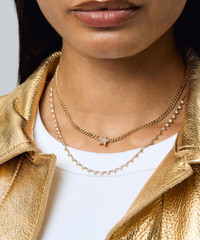 DETAILS Pendant necklace 14ct gold Chunky curb chain Diamond star pendant Lobster clasp fastening COMPOSITION & SIZE 14ct Gold; 0.33ct Diamond Chain L: 38cm