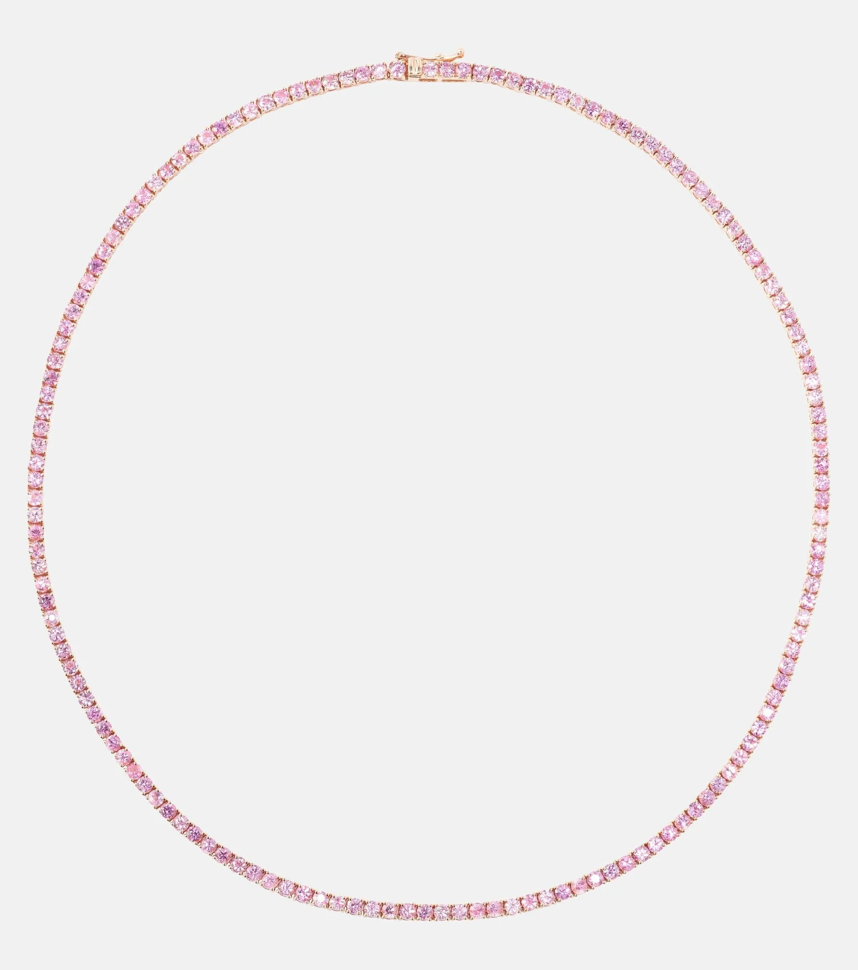 14kt rose gold tennis necklace with pink sapphires