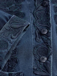 embroidered cotton coat Highlights - Blue - Floral embroidery - Long sleeves - Button front - Patch pockets - Embroidered details Imported Composition Cotton 100% Washing instructions Read Manufacturer Guidelines