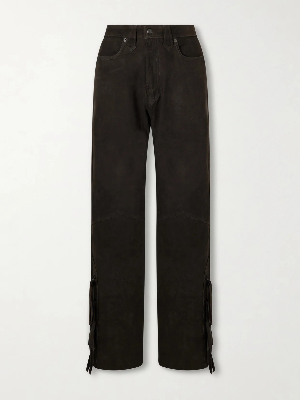 RRL's 'Kacie' pants are made from suede in 'Worn Black'. They're detailed with ties at the bottom of the legs that look and move like Western fringing. Style yours with ballet flats or cowboy boots.