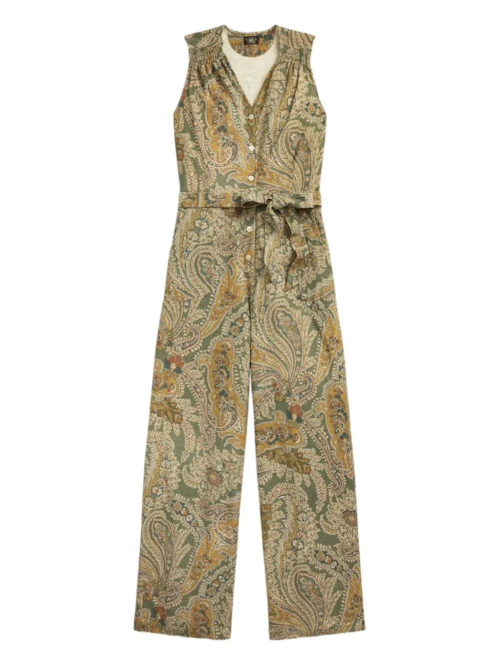 Isadora paisley-print jumpsuit Highlights - Beige - Front button fastening - Sleeveless - Self-tie belt - Straight leg Imported Composition Linen/Flax 55%, Cotton 45% Washing instructions Read Manufacturer Guidelines