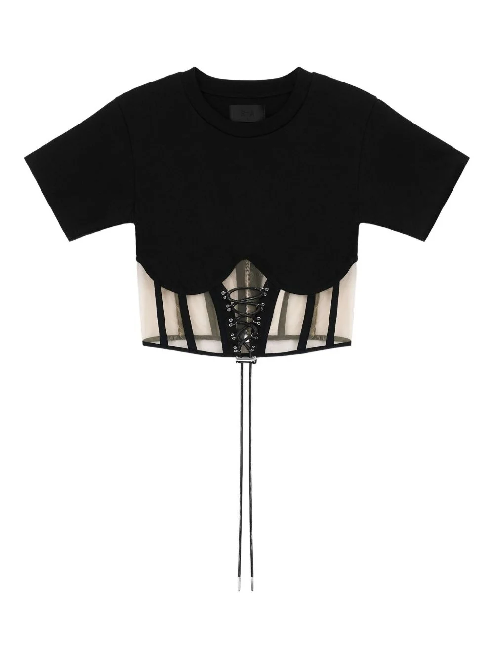 Angelina T-shirt Highlights - Black - Lace-up detailing - Corset style - Crew neck - Short sleeves Imported Composition Cotton 100%