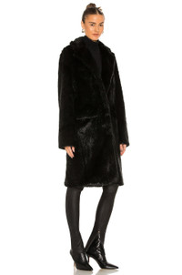 - Self: 100% modacrylic Lining: 100% poly - Made in China - Dry clean only - Singular front button closure - Front flap pockets - Buttoned cuffs - Faux fur fabric - Revolve Style No. RTAR-WO50 - Manufacturer Style No. WF21-F005-4036BLACK