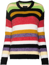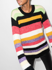 Esme striped jumper RtA adds a colourful edge to the classic crew-neck silhouette in this Esme jumper. Combining multiple spirited hues into a horizontal stripe pattern, the piece is designed for high impact. Imported Composition Acrylic 70%, Wool 22%, Alpaca 8% SIZE & FIT Model measurements Height 5 ft 10 in(1.78 m) Bust/Chest 30.7 in(78 cm) Hips 33.85 in(86 cm) Waist 22.44 in(57 cm) FittingInformation This piece fits true to size. We recommend you get your regular size Cut for a loose fit Made with a mid-weight fabric