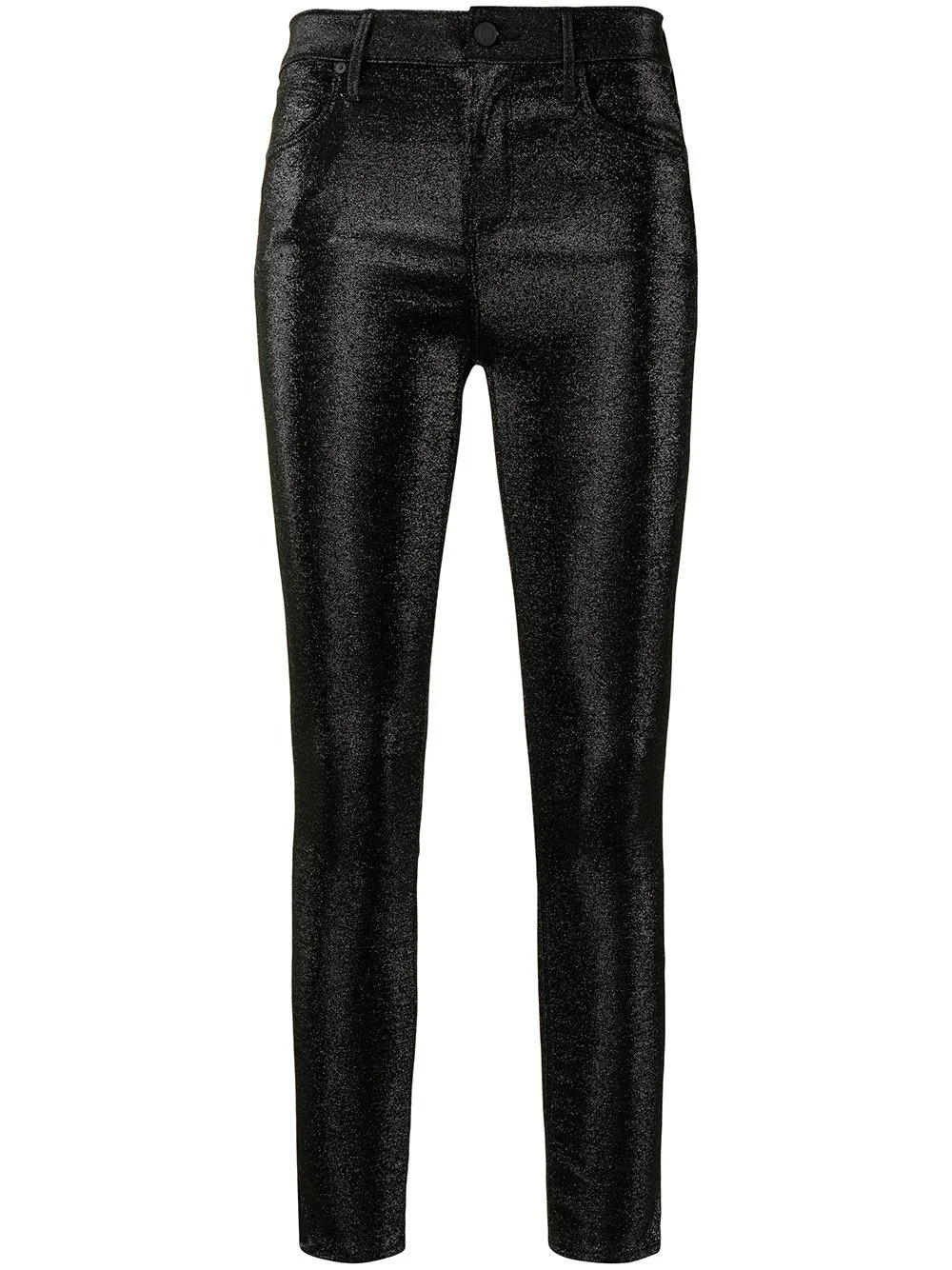 Madrid glitter skinny-fit trousers black cotton blend glitter detailing skinny cut stretch design mid-rise front button and zip fastening classic five pockets belt loops Made in United States Composition Cotton 82%, Metallized Polyester 15%, Elastane 3% SIZE & FIT Model measurements Height 5 ft 9 in(1.76 m) Bust/Chest 29.13 in(74 cm) Hips 33.07 in(84 cm) Waist 22.83 in(58 cm) FittingInformation This piece fits true to size. We recommend you get your regular size Cut for a close fit Made with a lightweight stretch fabric Washing instructions Dry Clean Only
