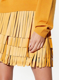Marcela mini skirt dark yellow calf leather fringe detailing slim cut high waist Imported Composition Leather 100% Lining: Nylon 82%, Spandex/Elastane 18% Washing instructions Specialist Cleaning