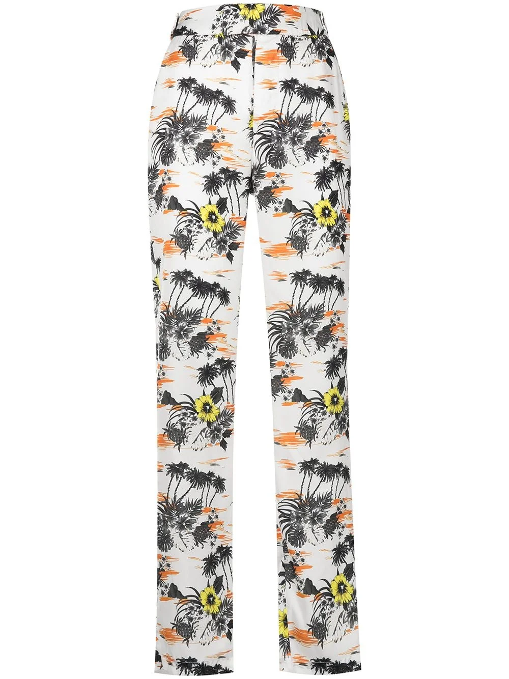 Maren Maui print trouser Maren Maui print trouser from RtA featuring white/multicolour, silk, all-over floral print, high-waisted, belt loops, straight leg, zip fly fastening, two side inset pockets and two rear welt pockets. Made in Italy Composition Silk 100% SIZE & FIT Model measurements Height 5 ft 10 in(1.77 m) Bust/Chest 29.92 in(76 cm) Hips 35.03 in(89 cm) Waist 24.01 in(61 cm) FittingInformation This piece fits true to size. We recommend you get your regular size Designed to be fitted at the waist and hips, loose over the leg Made with a lightweight fabric