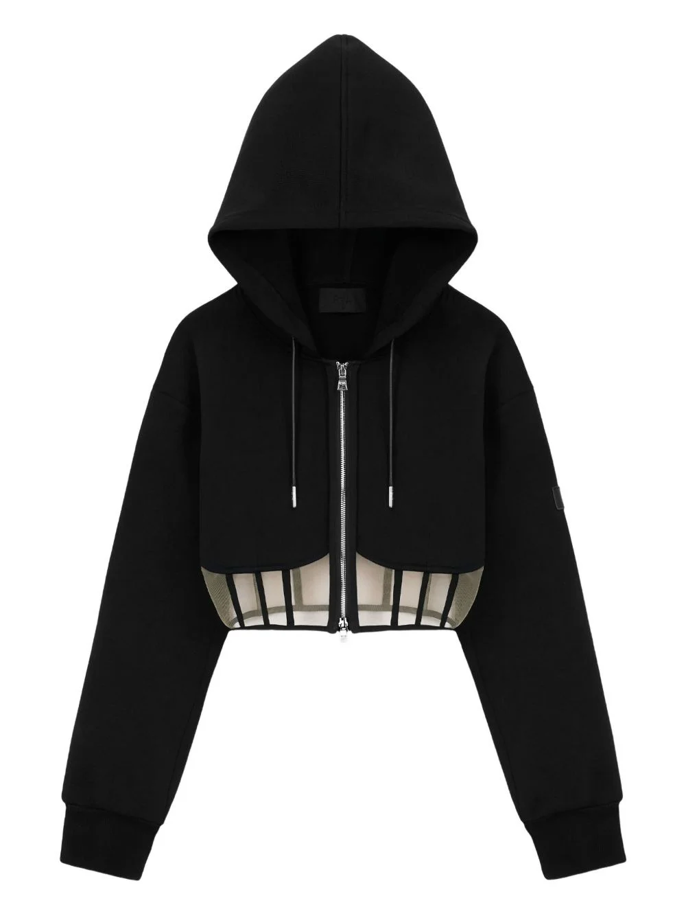 Nora zip-up hoodie Highlights - Black - Front two-way zip fastening - Drawstring hood - Mesh panelling - Cropped Imported Composition Fabric 100%