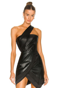 - Self: 100% lambskin leather Lining: 82% nylon 18% spandex - Made in China - Professional leather clean only - Gusset snap button closure with thong back - Asymmetric one shoulder styling - Padded cups and boned bodice - Ruched leather fabric - Revolve Style No. RTAR-WS139 - Manufacturer Style No. WH21-L005-7260BLACK