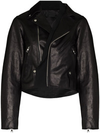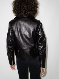 Saige leather biker jacket Imported Composition Outer: Leather 100%, Virgin Wool 100% Lining: Polyester 96%, Spandex/Elastane 4% SIZE & FIT Model measurements Height 5 ft 10 in(1.79 m) Bust/Chest 31.88 in(81 cm) Hips 35.43 in(90 cm) Waist 23.62 in(60 cm) FittingInformation This piece fits true to size. We recommend you get your regular size Cut for a loose fit Made with a mid-weight fabric
