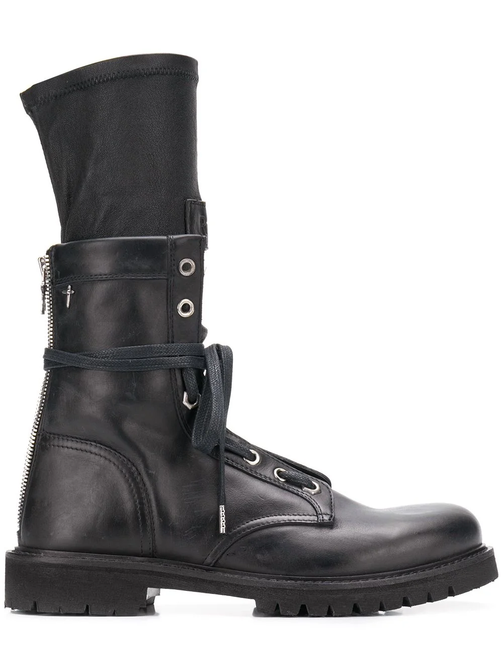 sock style boots Black leather sock style boots from RtA featuring a round toe, a lace-up front fastening, a back zip fastening, a ridged rubber sole and a chunky low heel. Made in Italy Composition Calf Leather 100%