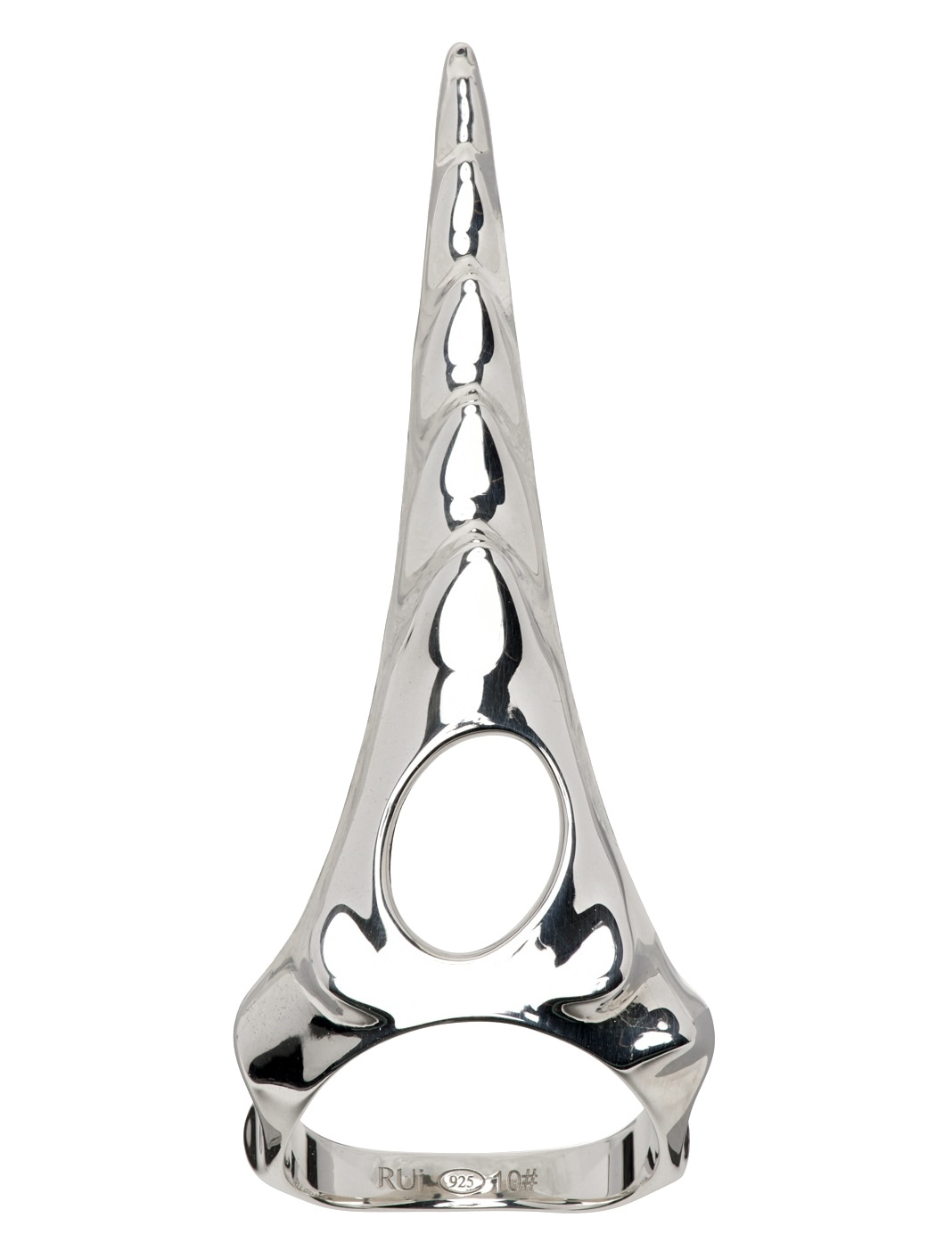 Band ring in sterling silver. · Textured detailing and cutout at face · Logo and hallmarking at inner band Supplier color: Bright/Silver