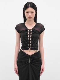 RUI blazer in black, fabric sourced from Italy, lapel collar, contrasting single button closure, drop shoulder, all-over slit details, back stitching detail, lined, relaxed fit. Imported Standard Sizing Composition: (Main) 100% Wool, (Lining) 90% Silk, 10% Spandex Model is 5'9" and is wearing size S. Bust: 32" Waist: 24" Hip: 34"
