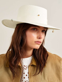 EDITORS'NOTES Ruslan Baginskiy's 'Gambler' hat draws inspiration from classic Western styles. Crafted from straw, it's embellished with gold- and silver-tone hardware and has a detachable chain strap that doubles as a necklace. The crown is traced with tonal grosgrain that features the label's logo embroidered at the center. SIZE & FIT - Measurements can be found in the link below DETAILS & CARE - Off-white straw and grosgrain - 100% straw; trim: 100% cotton