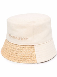 logo embroidered bucket hat beige/cream cotton/straw embroidered logo slip-on style colour-block panelled design Imported Composition Outer: Cotton 100%, Straw 100% Lining: Cotton 100% SIZE & FIT Measurement BRIM 2.36 in(6 cm) CIRCUMFERENCE 21.25 in(54 cm)