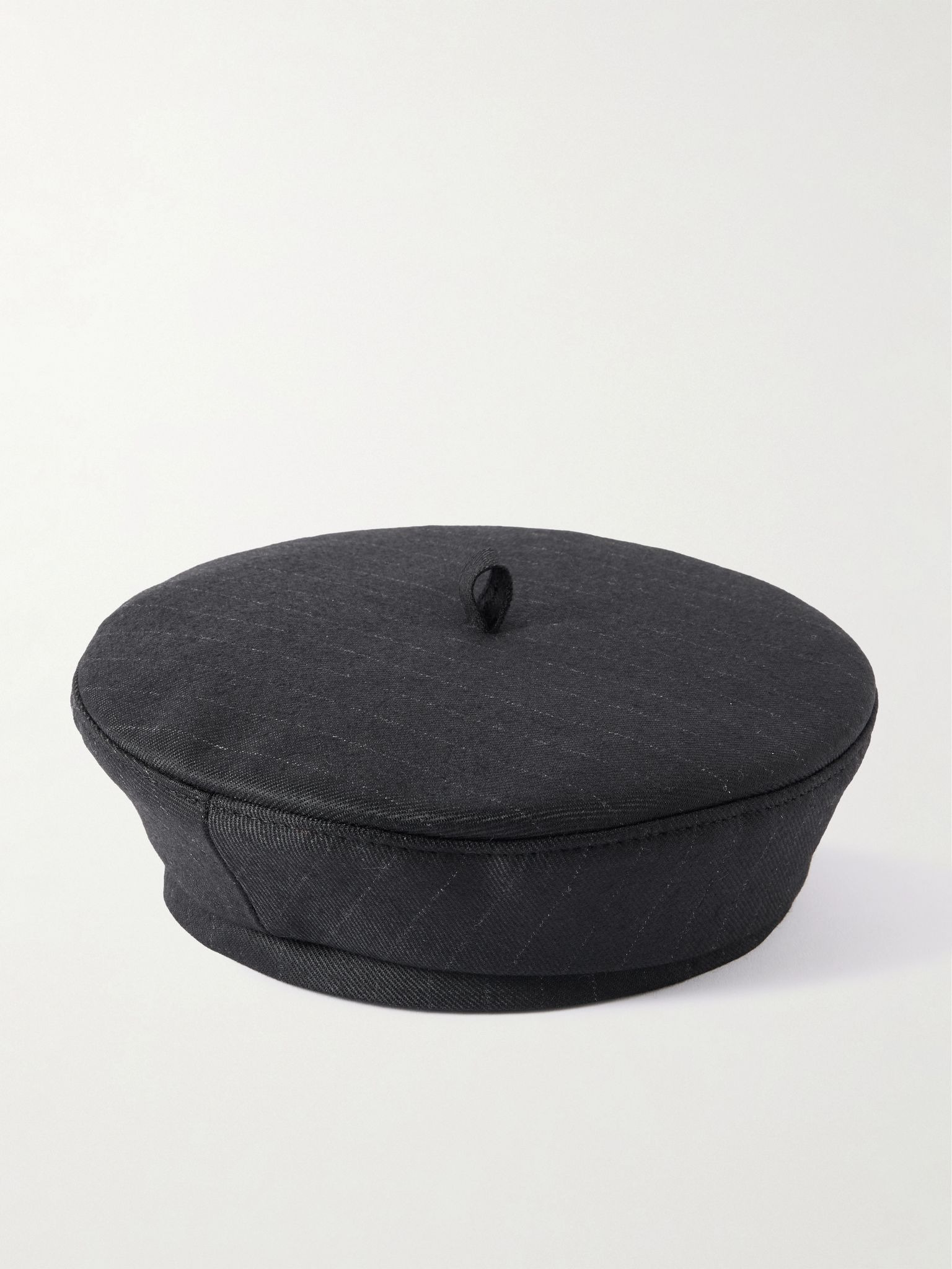 Ruslan Baginskiy's collections are rooted in the designer's native Ukraine, drawing on its art and national costumes. This structured beret is crafted from wool-blend with subtle pinstripes and embroidered with a logo on the rim. Wear yours with a relaxed suit to lean into its tailored feel. Details & Care - Black and white wool-blend - 50% wool, 50% polyamide; lining: 100% cotton