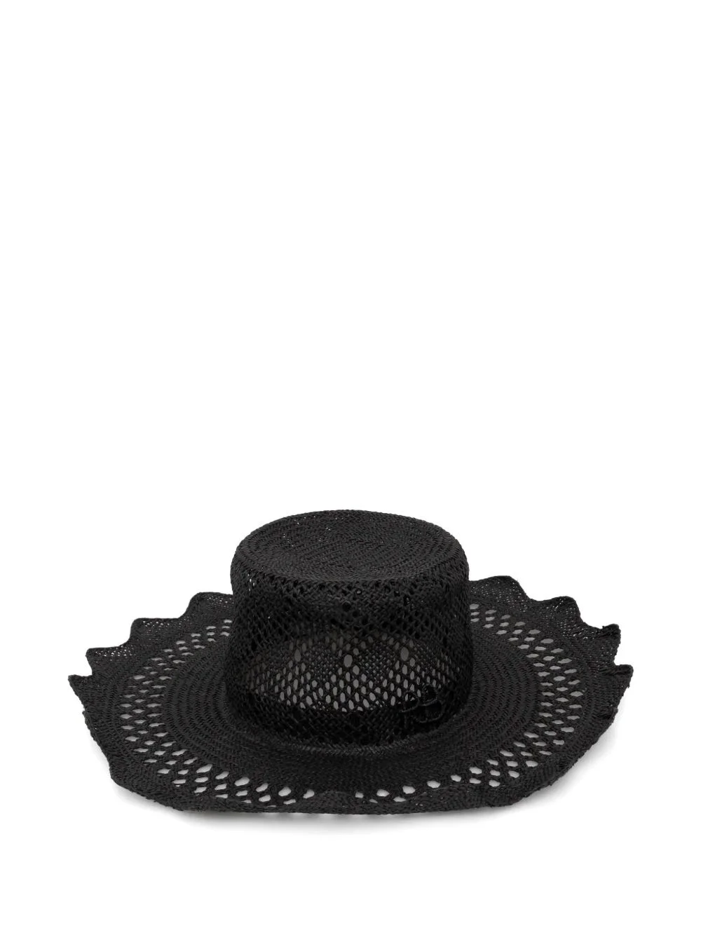 cut out-detail straw hat Highlights - Black - Embroidered logo to the front - Flat crown - Flat brim - Scallop edge Imported Composition Straw 100% SIZE & FIT Measurement CIRCUMFERENCE 21.25 in(54 cm)