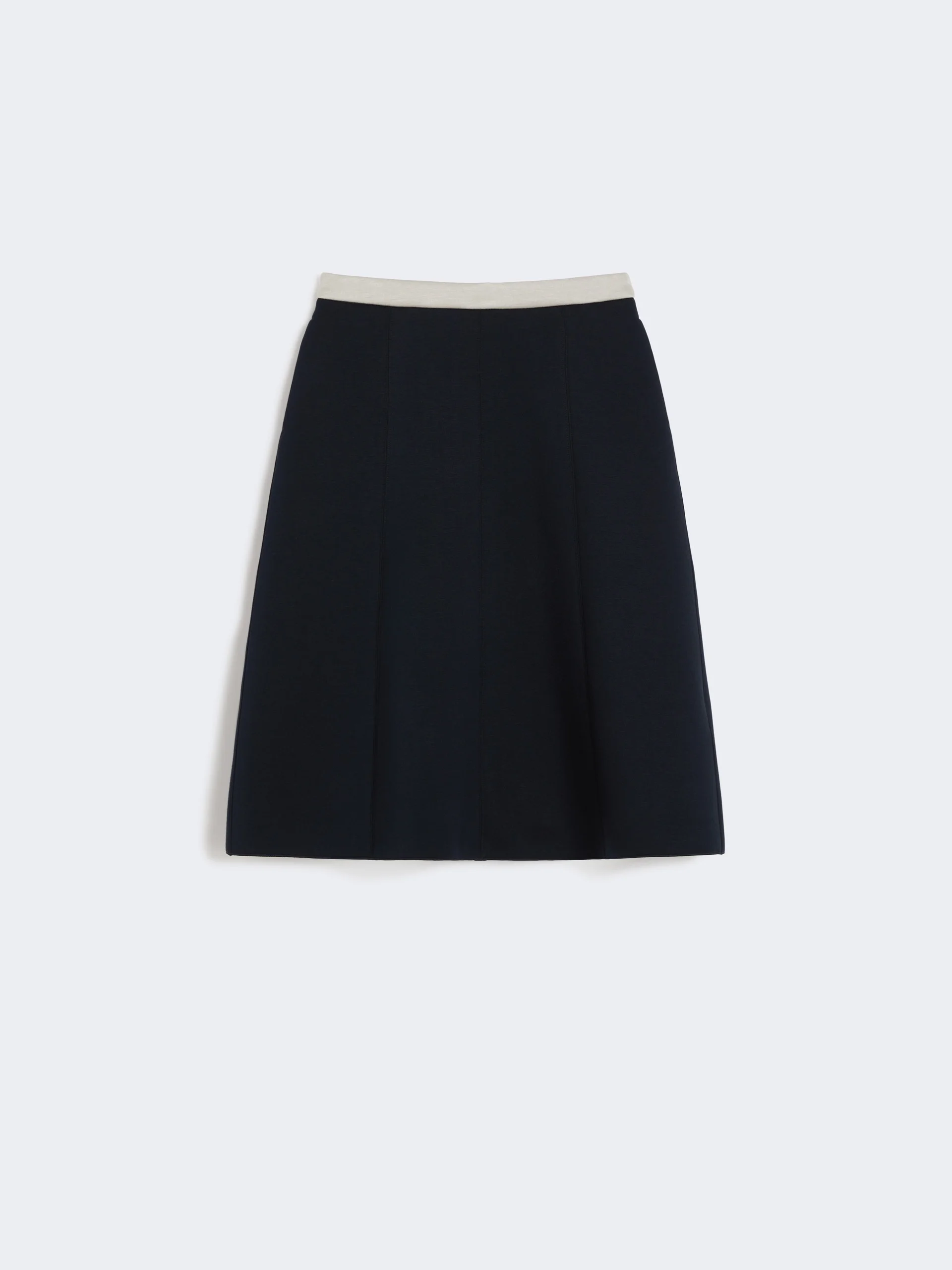 DETAILS Midi skirt with a vertical seam motif that highlights the silhouette. - Bonded viscose jersey skirt - Slightly flared line - Regular waist with contrasting waistband - Back zip fastening - Side inset pockets - Unlined COMPOSITION AND CARE 96% viscose, 4% elastane. Hand wash cold (40°c max); do not bleach; do not tumble dry; drip line drying in the shade; cool iron; do not dry clean; do not wet clean.; iron with a cloth between.; using neutral detergent.; don’t rub.; turn the articles inside out before washing.; to be ironed on reverse. Distributed by Max Mara S.r.l., registered office in Reggio Emilia (Italy), Via Giulia Maramotti 4, 42124 (IT)