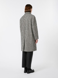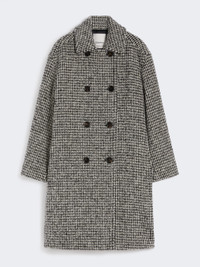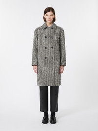 DETAILS Double-breasted trench-inspired coat with classic houndstooth pattern. Wool and alpaca blend fabric coat Straight cut, slightly flared at the hem Shirt collar and long sleeves with dropped shoulders Double-breasted closure Welt pockets on the sides Centre slit on the back Lined COMPOSITION AND CARE Fabric 48% virgin wool, 18% polyester, 14% acrylic, 11% alpaca, 9% polyamide; lining 69% acetate, 31% cupro. Do not wash; do not bleach; do not tumble dry; cool iron; professionally dry clean perchloroethylene - mild process; do not wet clean.; wash the garment while it is fastened.; do not iron the buttons.; protect buttons before washing.; turn the articles inside out before washing.; contains non-textile parts of animal origin. Distributed by Max Mara S.r.l., registered office in Reggio Emilia (Italy), Via Giulia Maramotti 4, 42124 (IT)