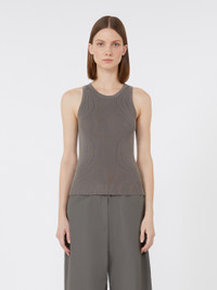DETAILS Sleeveless top featuring a silhouette-accentuating rib-knit pattern - Pure cotton yarn top - Slim fit - Wide crew neckline - Sleeveless design - Straight hem COMPOSITION AND CARE 100% cotton. Hand wash cold; do not bleach; do not tumble dry; flat drying in the shade; cool iron; professionally dry clean perchloroethylene - mild process; do not wet clean.; iron with a cloth between.; using neutral detergent.; turn the articles inside out before washing.; to be ironed on reverse. Distributed by Max Mara S.r.l., registered office in Reggio Emilia (Italy), Via Giulia Maramotti 4, 42124 (IT)