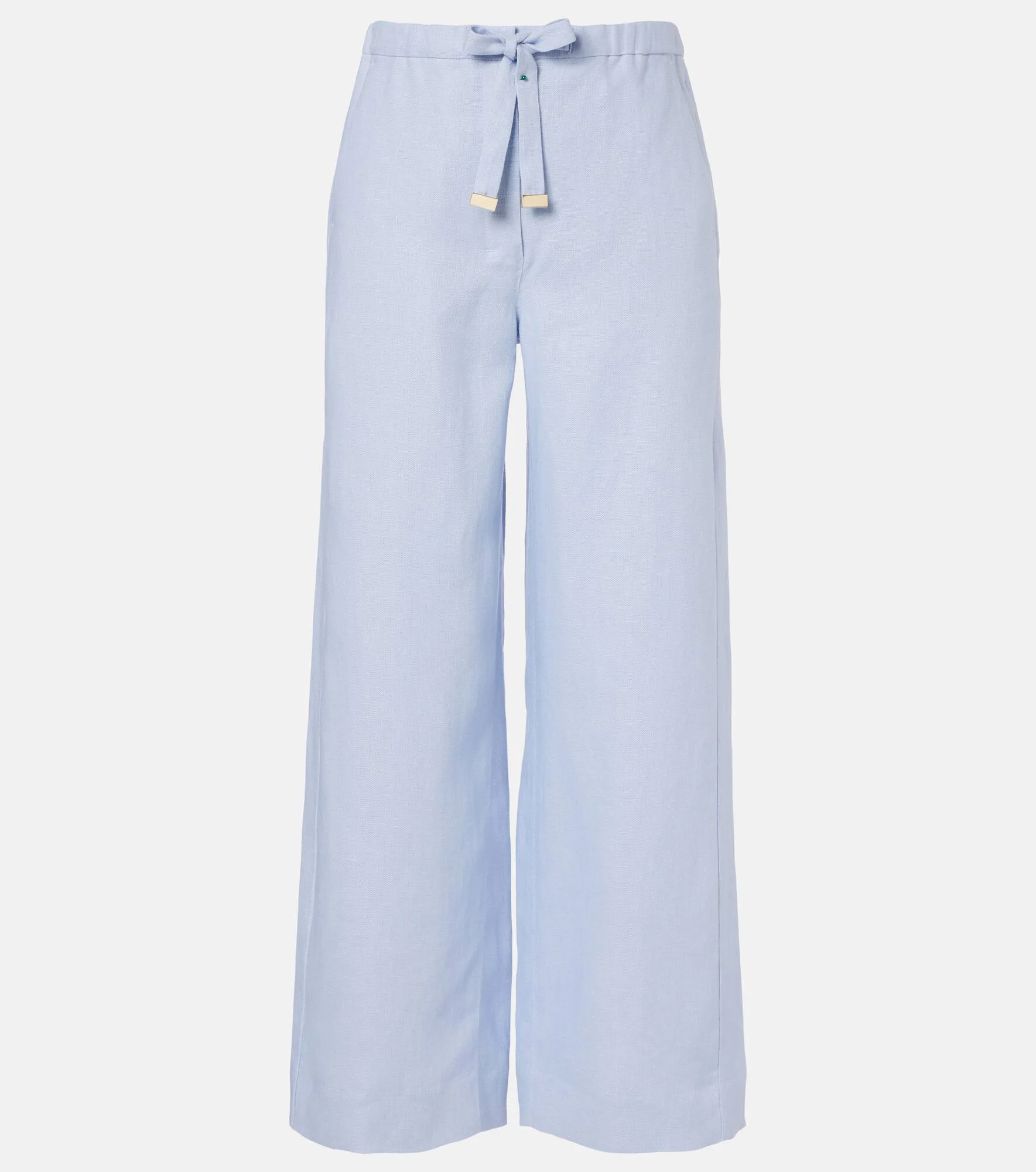 'S Max Mara conveys contemporary elegance through streamlined silhouettes and premium fabrics. Made from pure linen, the Amedea pants feature wide legs for a relaxed fit and a drawstring waist. Product Details - Material: 100% linen - Care instructions: dry clean - Made in Romania - Color: blue - Designer color name: Azzurro Breeze - Drawstring waist - Pockets: slant pockets - Closure: zipper fly, button and hook fastenings - Item number: P01159703 Size & Fit - True to size - Elasticated waist - Adjustable at the waist - Non-stretchy fabric - Wide-leg - High-waisted - The model seen in the picture is 178cm-5'10" and wearing a size DE 34