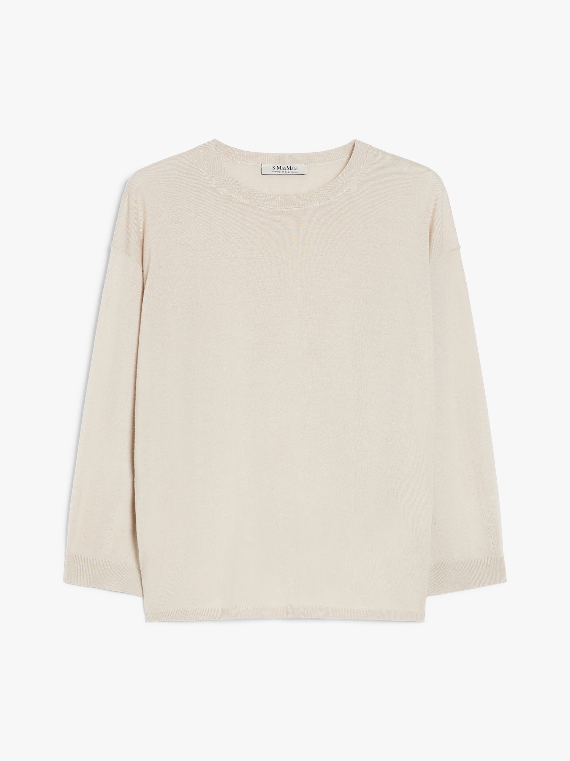 DETAILS Crew-neck sweater in fine lightweight pure wool yarn. The slightly flared model boasts low set-in bracelet sleeves. Rib-knit trims. COMPOSITION AND CARE 100% virgin wool. Hand wash cold; do not bleach; do not tumble dry; flat drying in the shade; cool iron; professionally dry clean perchloroethylene - mild process; do not wet clean.; iron with a cloth between.; using neutral detergent.; turn the articles inside out before washing.; to be ironed on reverse. Distributed by Max Mara S.r.l., registered office in Reggio Emilia (Italy), Via Giulia Maramotti 4, 42124 (IT)