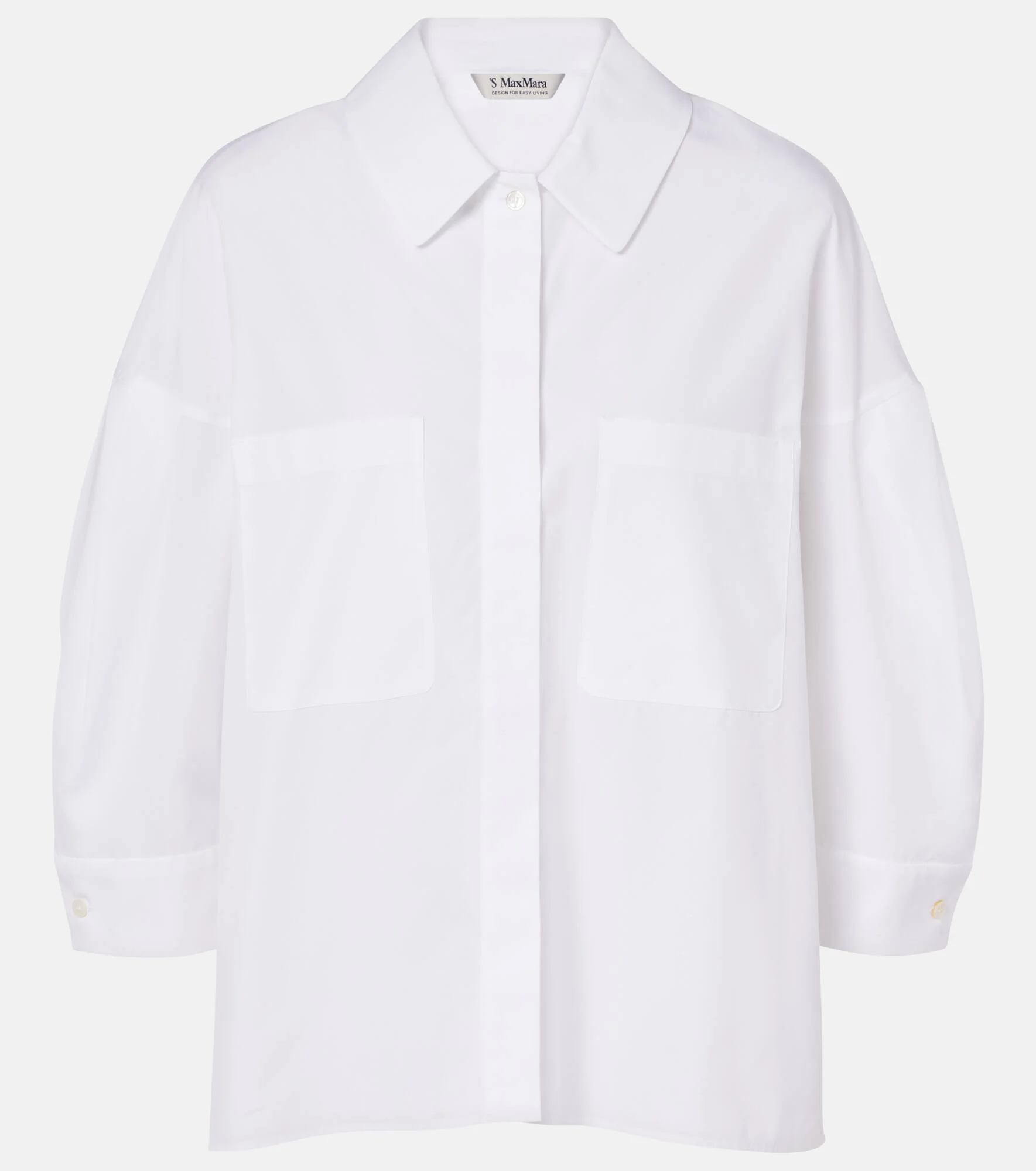 'S Max Mara conveys contemporary elegance through streamlined silhouettes and premium fabrics. Carefully crafted from cotton, the Ancella shirt features 3/4 sleeves, a concealed button placket, and pockets at the chest. Product Details - Material: 100% cotton - Care instructions: machine wash at 30 degrees - Made in Romania - Color: white - Designer color name: Bianco Candido - Closure: concealed button placket - Pockets: breast pockets - Contains non-textile parts of animal origin - Item number: P01159690 Size & Fit - True to size - Dropped shoulders - Designed for a loose fit - Non-stretchy fabric - Falls below the hip - The model seen in the picture is 178cm-5'10" and wearing a size DE 34