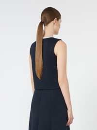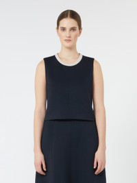 DETAILS Sleeveless top cropped to the waist. - Bonded viscose jersey top - Straight cut - Contrasting crew neck - Back concealed zip fastening - Vertical seam motif at the centre front and back COMPOSITION AND CARE 96% viscose, 4% elastane. Hand wash cold (40°c max); do not bleach; do not tumble dry; drip line drying in the shade; cool iron; do not dry clean; do not wet clean.; iron with a cloth between.; using neutral detergent.; don’t rub.; turn the articles inside out before washing.; to be ironed on reverse. Distributed by Max Mara S.r.l., registered office in Reggio Emilia (Italy), Via Giulia Maramotti 4, 42124 (IT)