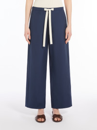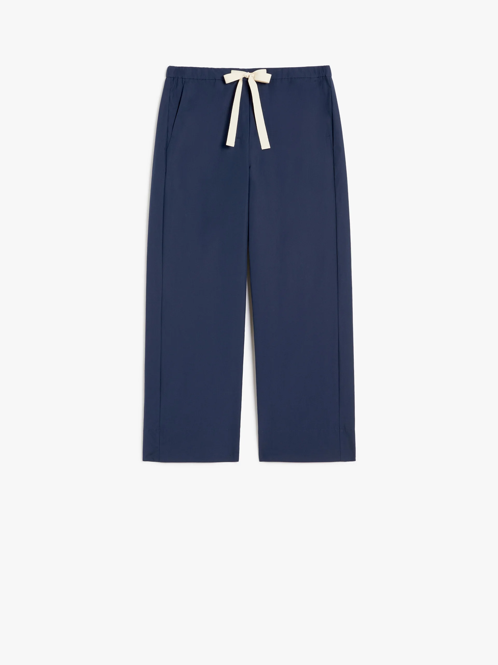 DETAILS Straight-leg jogger-style trousers in pure cotton poplin fabric featuring a drawstring-adjustable elasticated waistband. Embellished with slant side pockets, and a fly-covered zip and small hook-and-bar fastening. COMPOSITION AND CARE Fabric 100% cotton; - exclusive of decoration. Machine wash cold delicate cycle; do not bleach; do not tumble dry; line drying in the shade; cool iron; professionally dry clean perchloroethylene - mild process.; wash the garment while it is fastened.; do not iron the buttons.; protect buttons before washing.; contains non-textile parts of animal origin. Distributed by Max Mara S.r.l., registered office in Reggio Emilia (Italy), Via Giulia Maramotti 4, 42124 (IT)