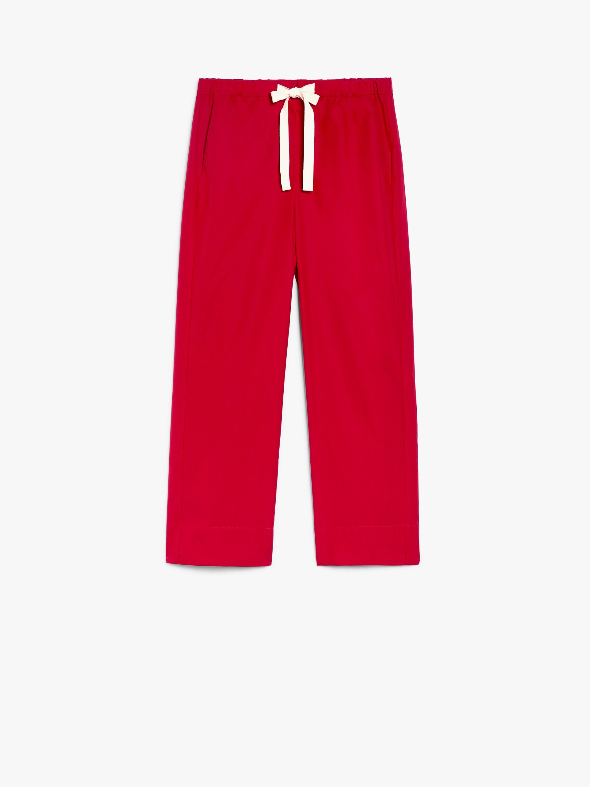 DETAILS Straight-leg jogger-style trousers in pure cotton poplin fabric featuring a drawstring-adjustable elasticated waistband. Embellished with slant side pockets, and a fly-covered zip and small hook-and-bar fastening. COMPOSITION AND CARE Fabric 100% cotton; - exclusive of decoration. Machine wash cold delicate cycle; do not bleach; do not tumble dry; line drying in the shade; cool iron; professionally dry clean perchloroethylene - mild process.; wash the garment while it is fastened.; do not iron the buttons.; protect buttons before washing.; contains non-textile parts of animal origin. Distributed by Max Mara S.r.l., registered office in Reggio Emilia (Italy), Via Giulia Maramotti 4, 42124 (IT)