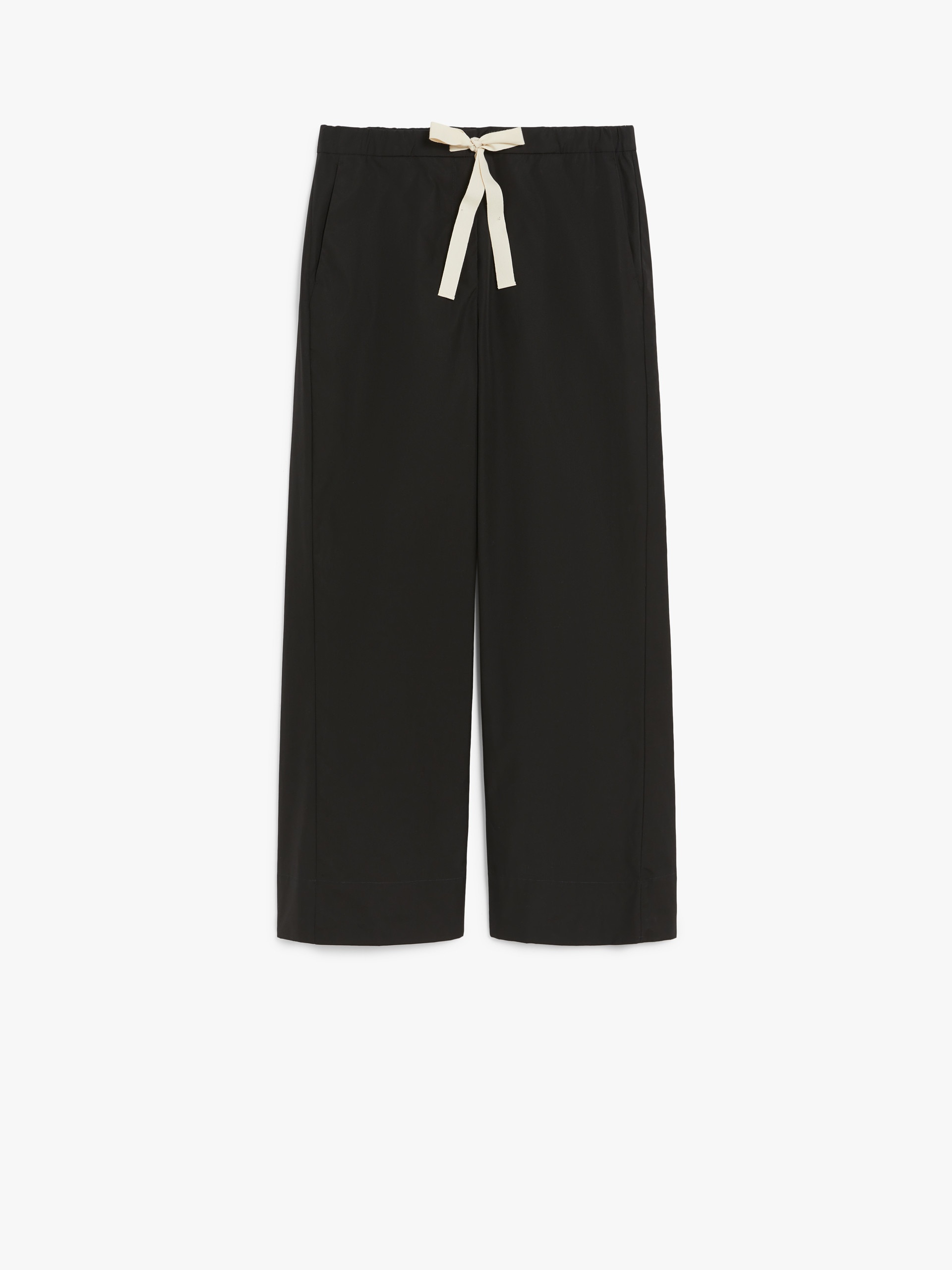 DETAILS Straight-leg jogger-style trousers in pure cotton poplin fabric featuring a drawstring-adjustable elasticated waistband. Embellished with slant side pockets, and a fly-covered zip and small hook-and-bar fastening. COMPOSITION AND CARE Fabric 100% cotton; - exclusive of decoration. Machine wash cold delicate cycle; do not bleach; do not tumble dry; line drying in the shade; cool iron; professionally dry clean perchloroethylene - mild process.; wash the garment while it is fastened.; do not iron the buttons.; protect buttons before washing.; contains non-textile parts of animal origin. Distributed by Max Mara S.r.l., registered office in Reggio Emilia (Italy), Via Giulia Maramotti 4, 42124 (IT)